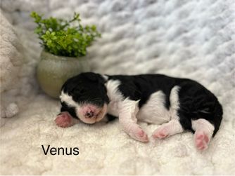 Our puppies include black and white and tri-color. Colors will vary depending on the parent dogs.