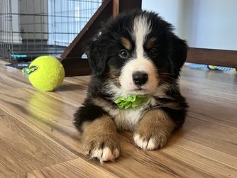 Berner Bud Farm is the best breeder. Kristen is so knowledgeable and caring. She kept us up to date on the development of the puppies and poured her heart into helping socialize the litter with lots of experiences. Our River came home completely potty trained on the grass mat at 9 weeks old! We are so lucky we found Kristin.