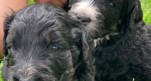 Our Bernedoodle puppies are tri-color. Colors will vary depending on the parent dogs.