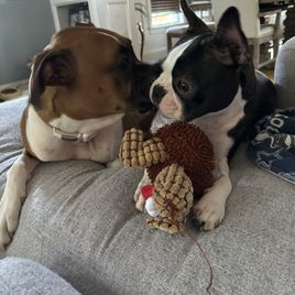 I have had my Boston Terrier, Puffin for a year today. This is my third Boston Terrier and dealing with Bernies Boston Terriers was wonderful from the very beginning. I had been looking for a Boston Terrier for a couple of months and had definitely run into some sketchy breeders and scammers during my search. I turned to Good Dog because of their affiliation with the AKC. I found Bernice very quickly and sent her an email. It was all like it was meant to be from my very first email correspondence with her. I could tell that she loved all of her dogs and was not in it just to turn a profit. We had a few video calls and I was so excited when Bernice and Edgar choose me to take my baby home. They were a joy to deal with and gave me the best baby girl who is sweet and feisty all at the same time. We continue to stay in contact through social media. I love being able to see pictures of Puffin's parents and new siblings and I hope Bernice and Edgar enjoy seeing Puffin's adventures as well. I would highly recommend Bernies Boston Terriers for wonderful puppies with great temperaments. It is easy to see that these puppies come from a loving home.