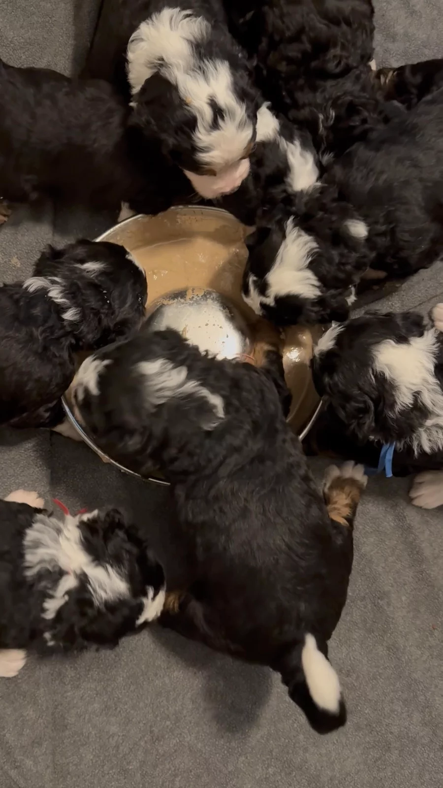 Puppies had their first taste of puppy mush and had their first sponge baths today.
