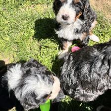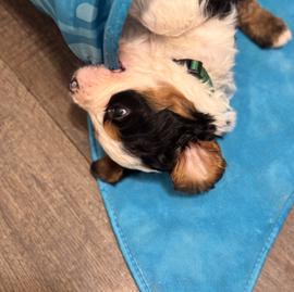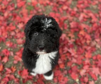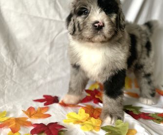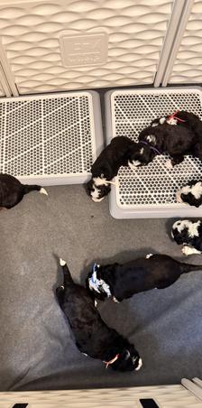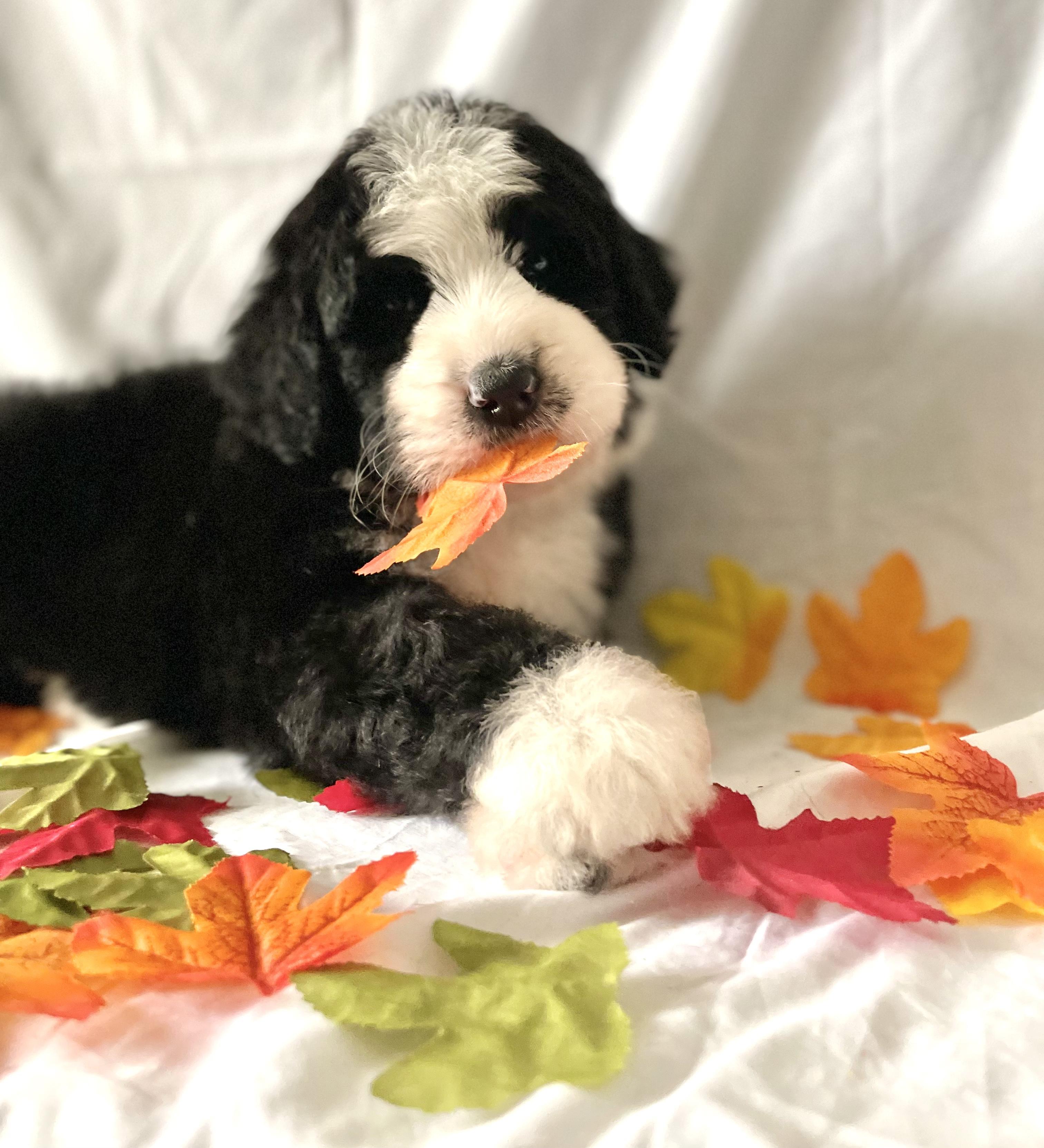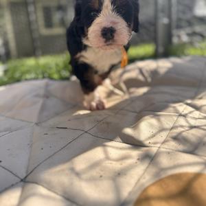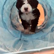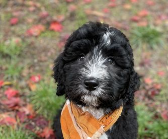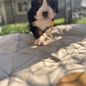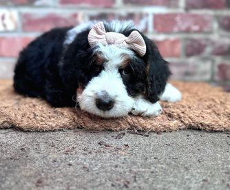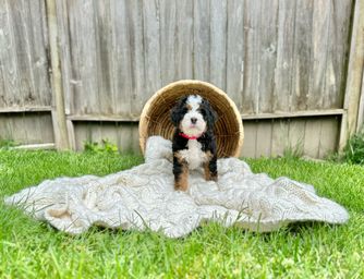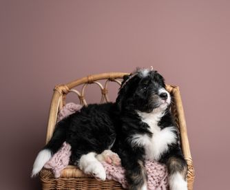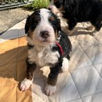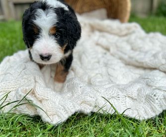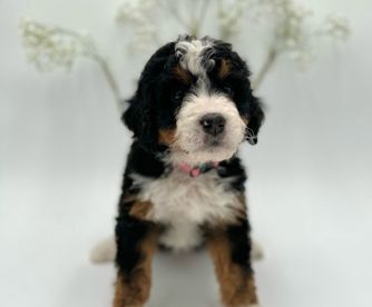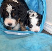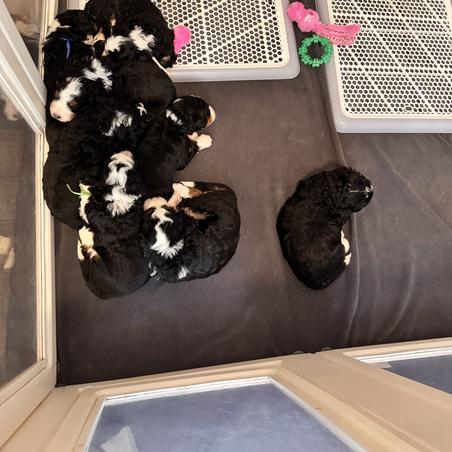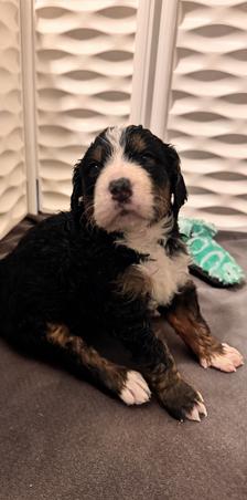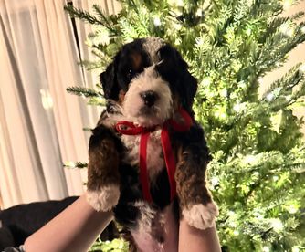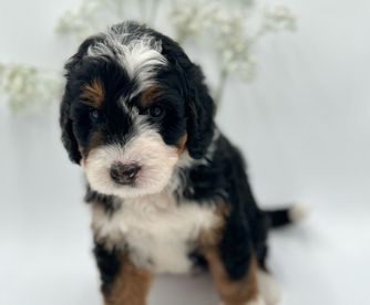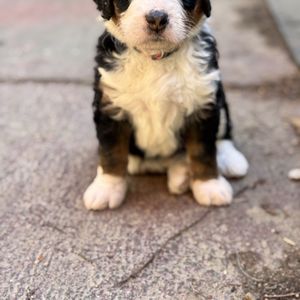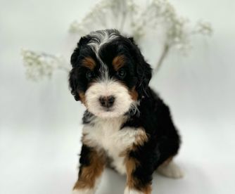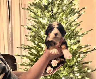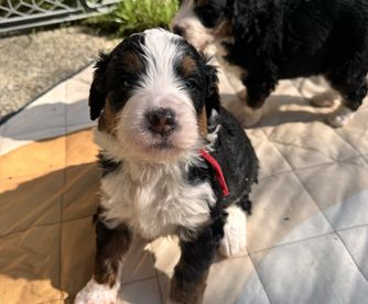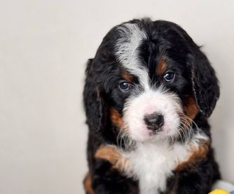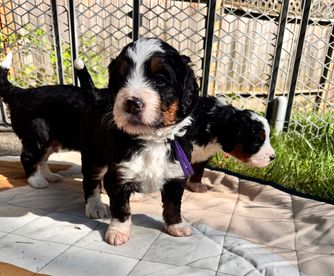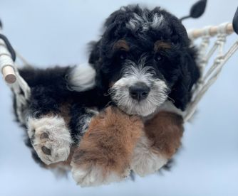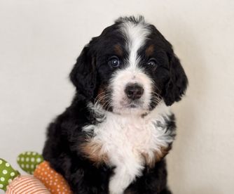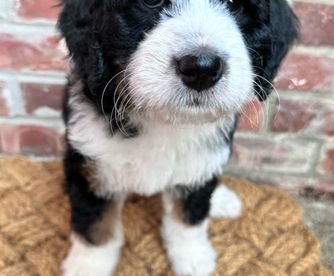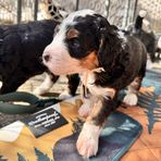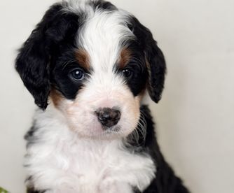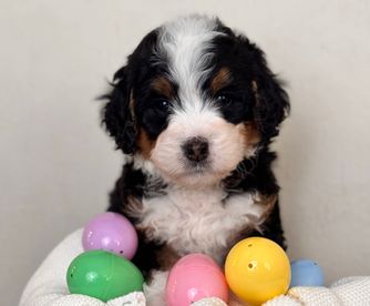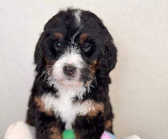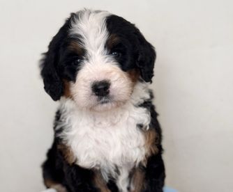 Bernedoodle puppies are tri-color. Colors will vary depending on the parent dogs.