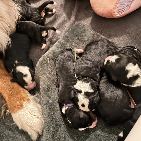 We have welcomed 8 perfect puppies into the world yesterday. 3 boys and 5 girls. Autumn is the best Mom, this is her 3rd and last litter. Mama is doing great and getting all the special snacks.