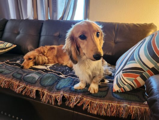 Hank is a male Dachshund. Carefully selected as a great representative of his breed, Kim decided to make him part of their program. Kim has passed Good Dog’s screening process, which involved a review of their breeding practices, environment, and the mental and physical health of their dogs.