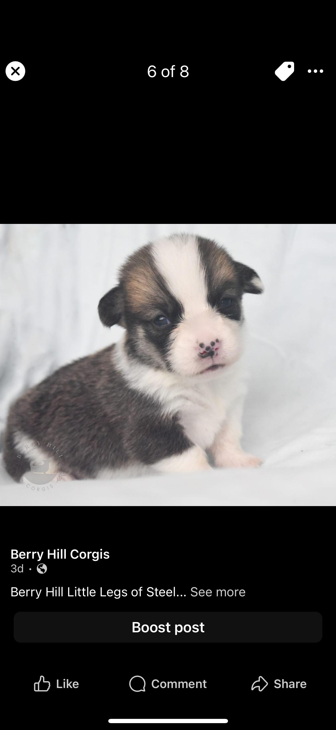 Jewel is a female Pembroke Welsh Corgi. Carefully selected as a great representative of her breed, Brandi decided to make her part of their program. Brandi has passed Good Dog’s screening process, which involved a review of their breeding practices, environment, and the mental and physical health of their dogs.