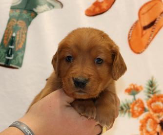 Our Golden Retriever puppies include dark golden and golden. Colors will vary depending on the parent dogs.