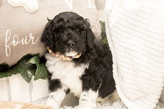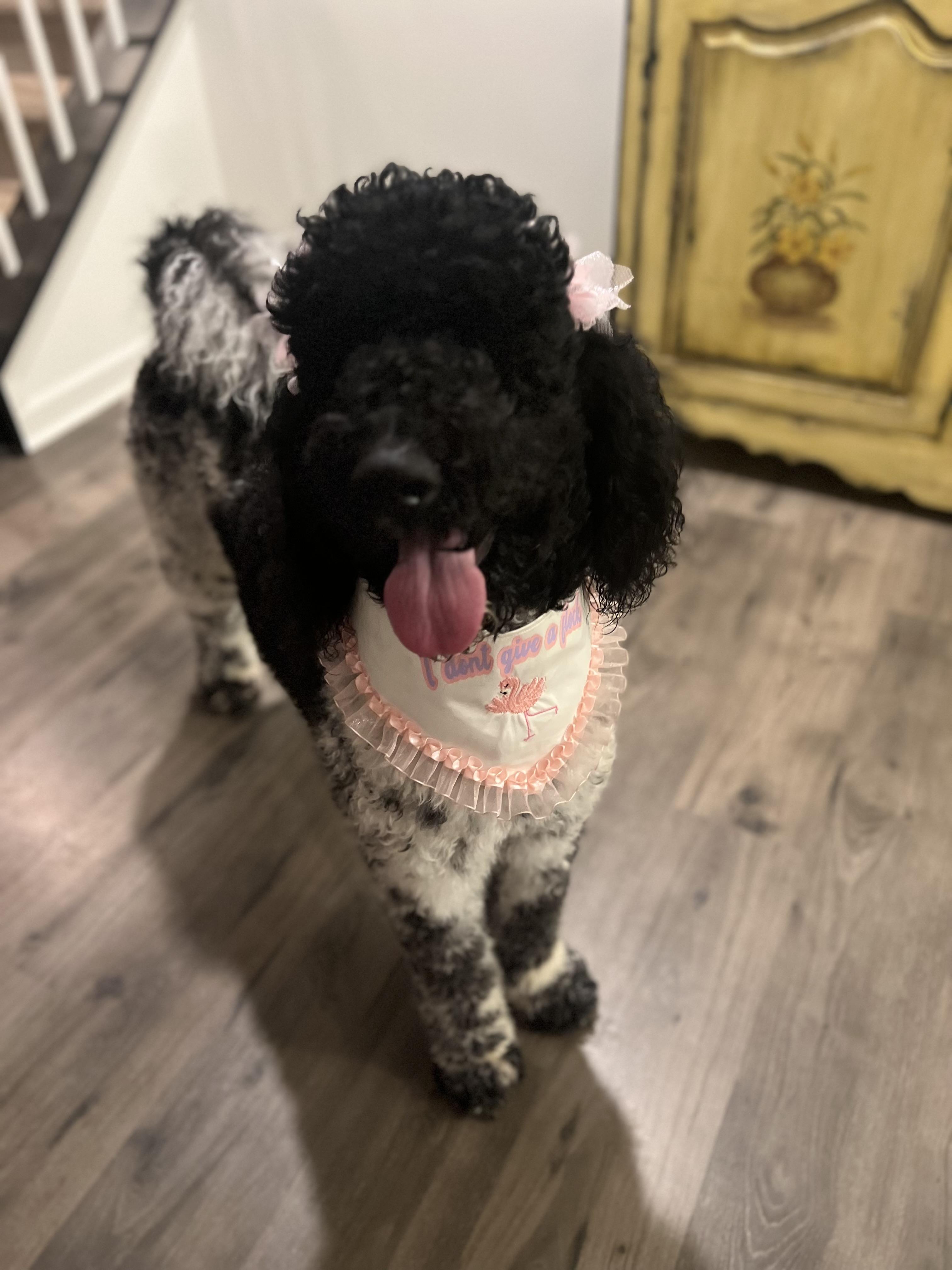 River is a beautiful mommy’s girl! She is a black and white Parti who’s simply gorgeous!