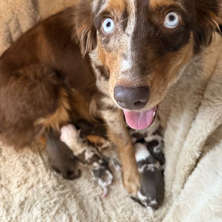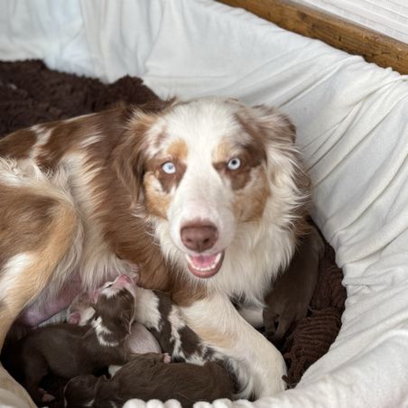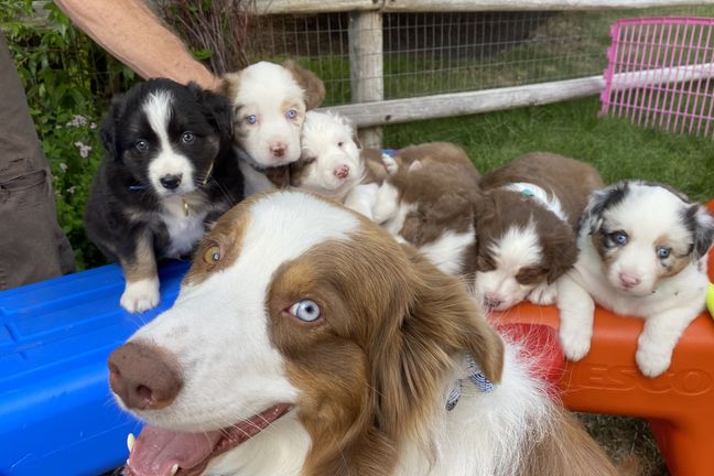 I'm Kristine S., the breeder behind Best Friend Aussies located in Penrose, CO. At Best Friend Aussies, we believe dogs should keep the tails they are born with and breeding dogs should not live in cages. That’s why we don’t dock our puppies’ beautiful tails and our dogs live together in a healthy and stable pack with Rowan as their fair and gentle leader. Our dogs and puppies ( when old enough) run free during the day on our small hobby farm complete with a pond, a variety of Farm Animals (that need constant herding), Lavender and Goji Berries. We breed with the goal of undoing the harmful effects of inbreeding. Our puppies have great gentetic diversity to support strong immune systems. We have puppies available to be YOUR NEXT BEST FRIEND! We arededicated to raising the bar in intelligent breeding for Optimal Health. We don’t stop at the standard health testing. We go beyond to produce puppies with the best chance at living long healthy lives as your best friend. Strong immune systems Most good breeders these days have their breeding pairs tested to see if they are carriers for any genetic diseases they could pass on to their puppies. This is becoming a welcomed standard. But, the most common diseases affecting Australian shepherds cannot currently be genetically screened for. These include hemangiosarcoma, autoimmune hypothyroidism and Diabetes. At Best Friend Aussies we focus on breeding for puppies with strong immune systems to give them the best chances at remaining healthy. We do this by meticulously choosing our breeding pairs that produce puppies with exceptional genetic diversity. Modern science shows that high genetic diversity supports strong immune systems and longer, healthier lives.