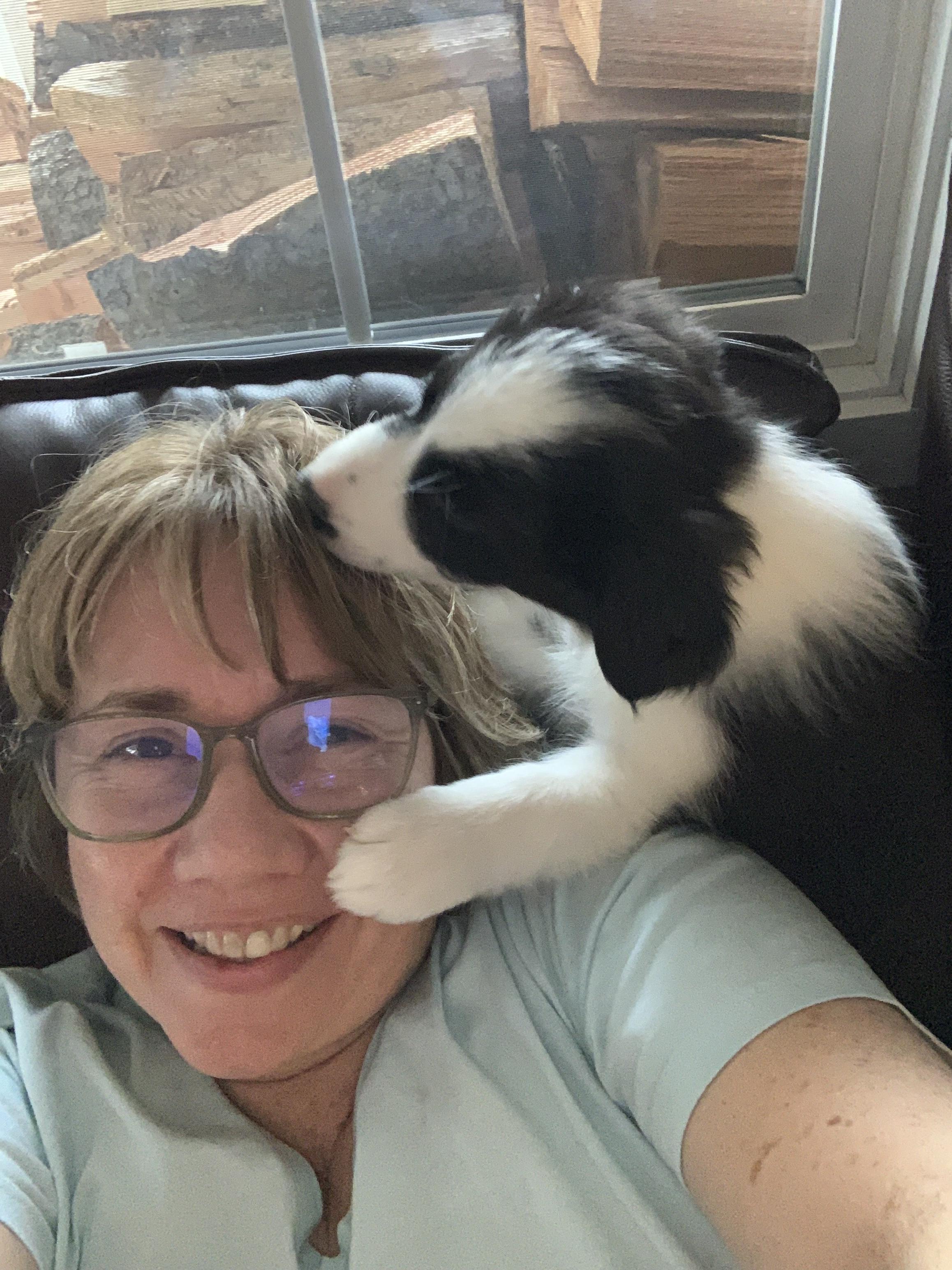 We got our little fluffy boy Ghost two weeks ago and 9 weeks old. Right away talking with Susan I felt reassured he was coming from a loving family that cares about their dogs and puppies We lost our Border Collie of 14 years the day Ghost was born. Everything was lining up and we are so thrilled on having one of Susan’s puppies in our family. We've had border collies in our lives for quite some time and know this high energy border collie breed well. Their energy and love is the best. Ghost is a quick learner, already knows his name, recall, sit, lay down, spin, crate and so eager to learn more. He is a snuggly, happy and healthy loving cute little ball of fluff 10/10 would recommend Susan and appreciate her greatly