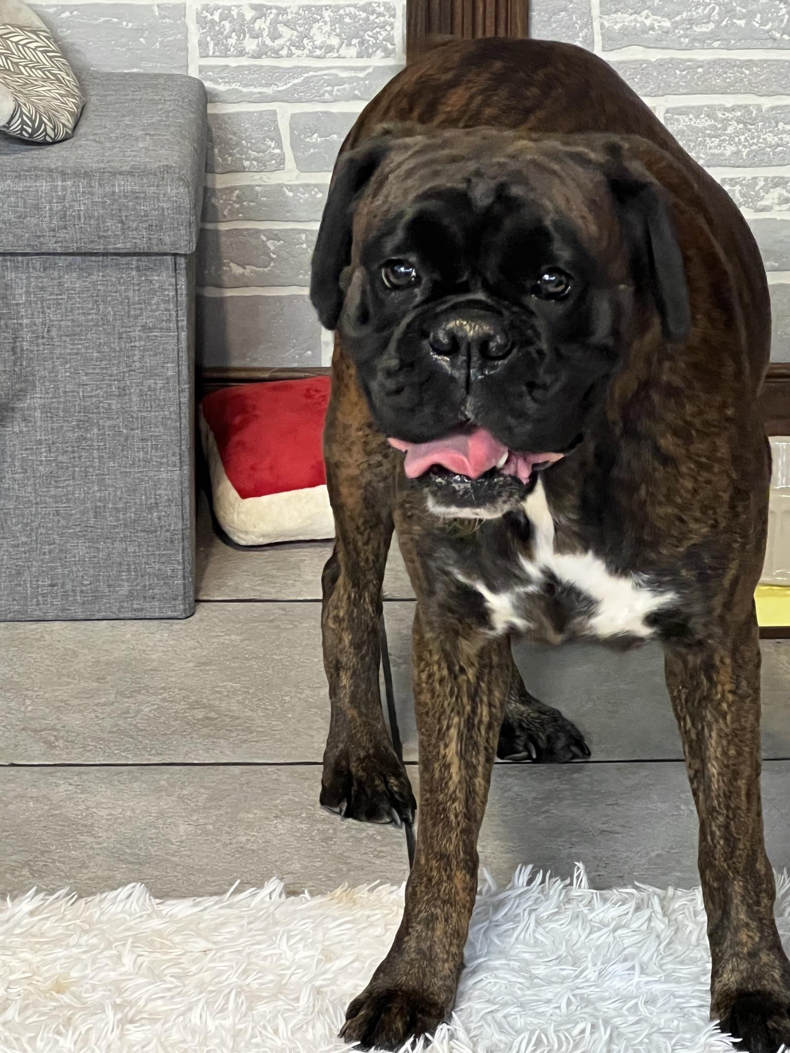 Damon is a male Boxer. Carefully selected as a great representative of his breed, Heidi decided to make him part of their program. Heidi has passed Good Dog’s screening process, which involved a review of their breeding practices, environment, and the mental and physical health of their dogs.