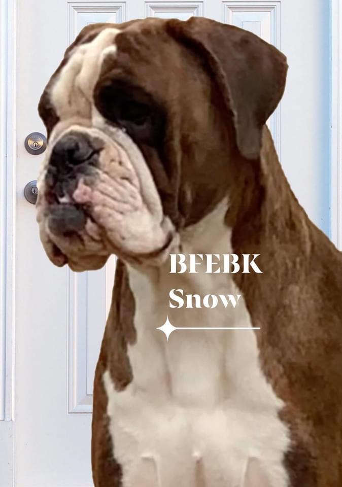 Snow is a female Boxer. Carefully selected as a great representative of her breed, Heidi decided to make her part of their program. Heidi has passed Good Dog’s screening process, which involved a review of their breeding practices, environment, and the mental and physical health of their dogs.