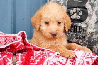 Pearl is a female Aussiedoodle. Carefully selected as a great representative of her breed, Keri decided to make her part of their program. Keri has passed Good Dog’s screening process, which involved a review of their breeding practices, environment, and the mental and physical health of their dogs.