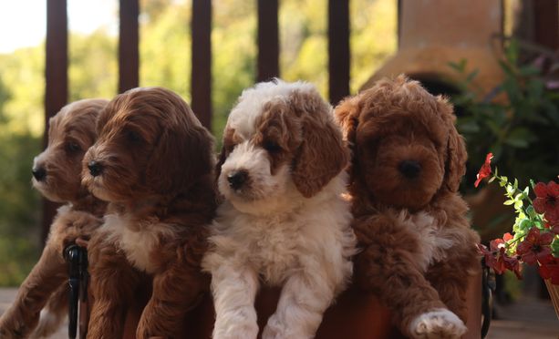 Our puppies include miniature and medium sizes. Sizes will vary depending on the parent dogs.