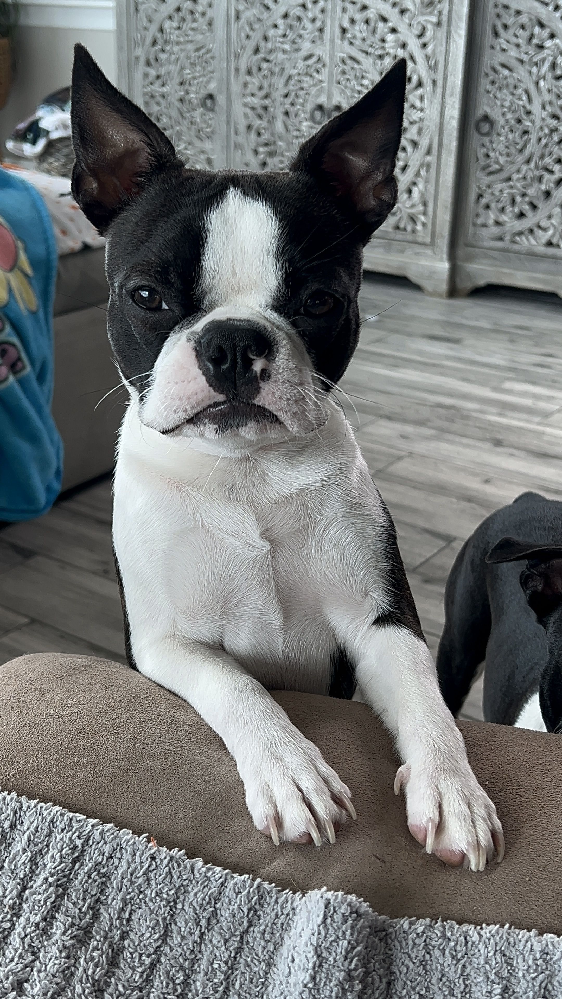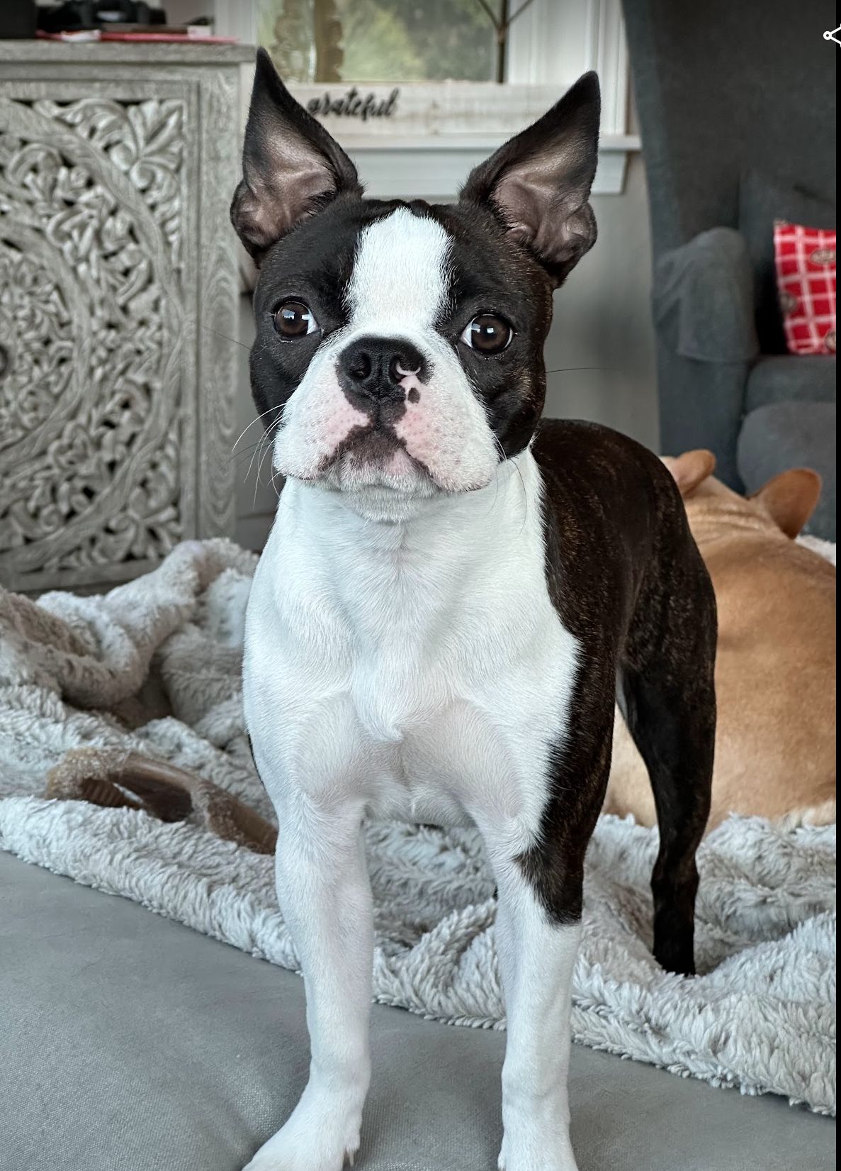 My parents bred their first Boston Terrier, which gave me my childhood dog, Moo Moo, who sadly passed in 2022. When we got Pepper and Peaches, I decided to have one litter to share the joy of this breed with my family so they could also experience the love of having their own Boston Terrier, just like I did growing up.
