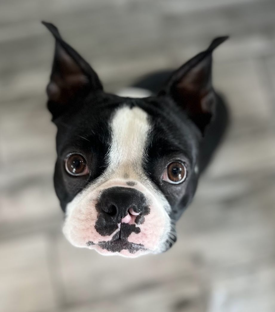 Peachy is a playful yet cuddly Boston Terrier with a diva attitude. She loves zooming around outside with her sister, Pepper, but when playtime is over, she’s all about snuggling up for some cozy downtime.