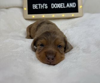 I'm Bethany T., the breeder behind Beth’s Doxieland located in Dickinson, TX. We are a family-run small breeding program offering loving, loyal, and well rounded puppies. All dogs are raised in our home and with our family.They get a lot of affection and snuggles to ensure they’re prepared when meeting their forever family!