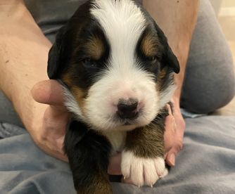 Jetta is a female Bernese Mountain Dog. Carefully selected as a great representative of her breed, Kal decided to make her part of their program. Kal has passed Good Dog’s screening process, which involved a review of their breeding practices, environment, and the mental and physical health of their dogs.