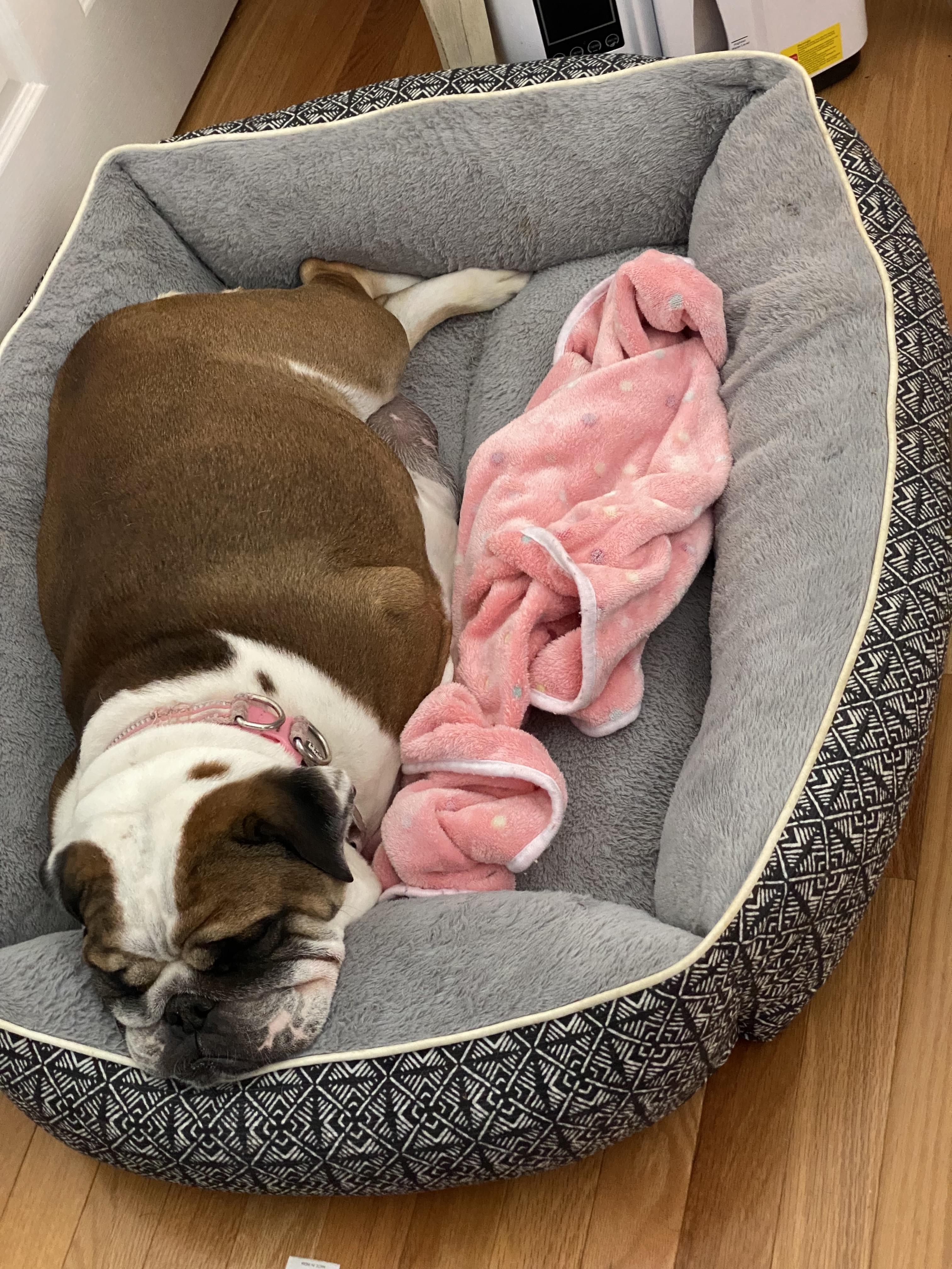 Cinni is a female Bulldog. Carefully selected as a great representative of her breed, Betty decided to make her part of their program. Betty has passed Good Dog’s screening process, which involved a review of their breeding practices, environment, and the mental and physical health of their dogs.