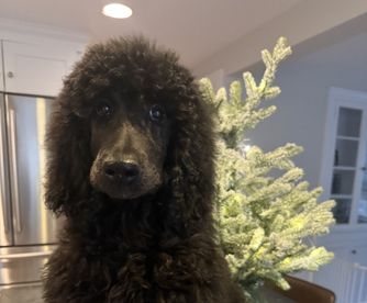 “12 week old black female standard poodle. AKC registered. Fantastic lines. Super sweet, pad trained, socialized and looking for her forever family. Parents are both OFA health tested.”