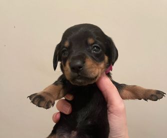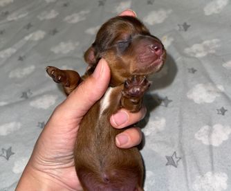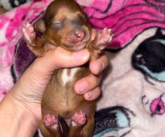 Weenie is a female Dachshund. Carefully selected as a great representative of her breed, Brandi decided to make her part of their program. Brandi has passed Good Dog’s screening process, which involved a review of their breeding practices, environment, and the mental and physical health of their dogs.
