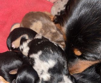 Puppy prices include a $500 non-refundable deposit and between $500 - $1,000 final payment, before taxes & fees.