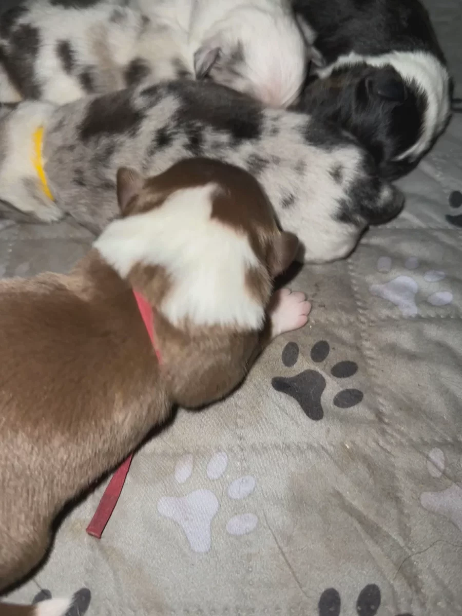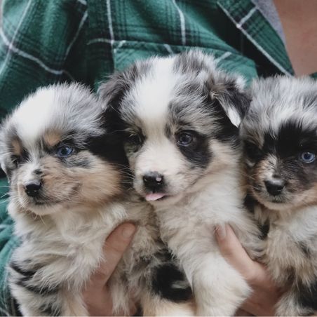 Our puppies include black & white, red & white, red merle, blue merle, black tri-color, and red tri-color. Colors will vary depending on the parent dogs.
