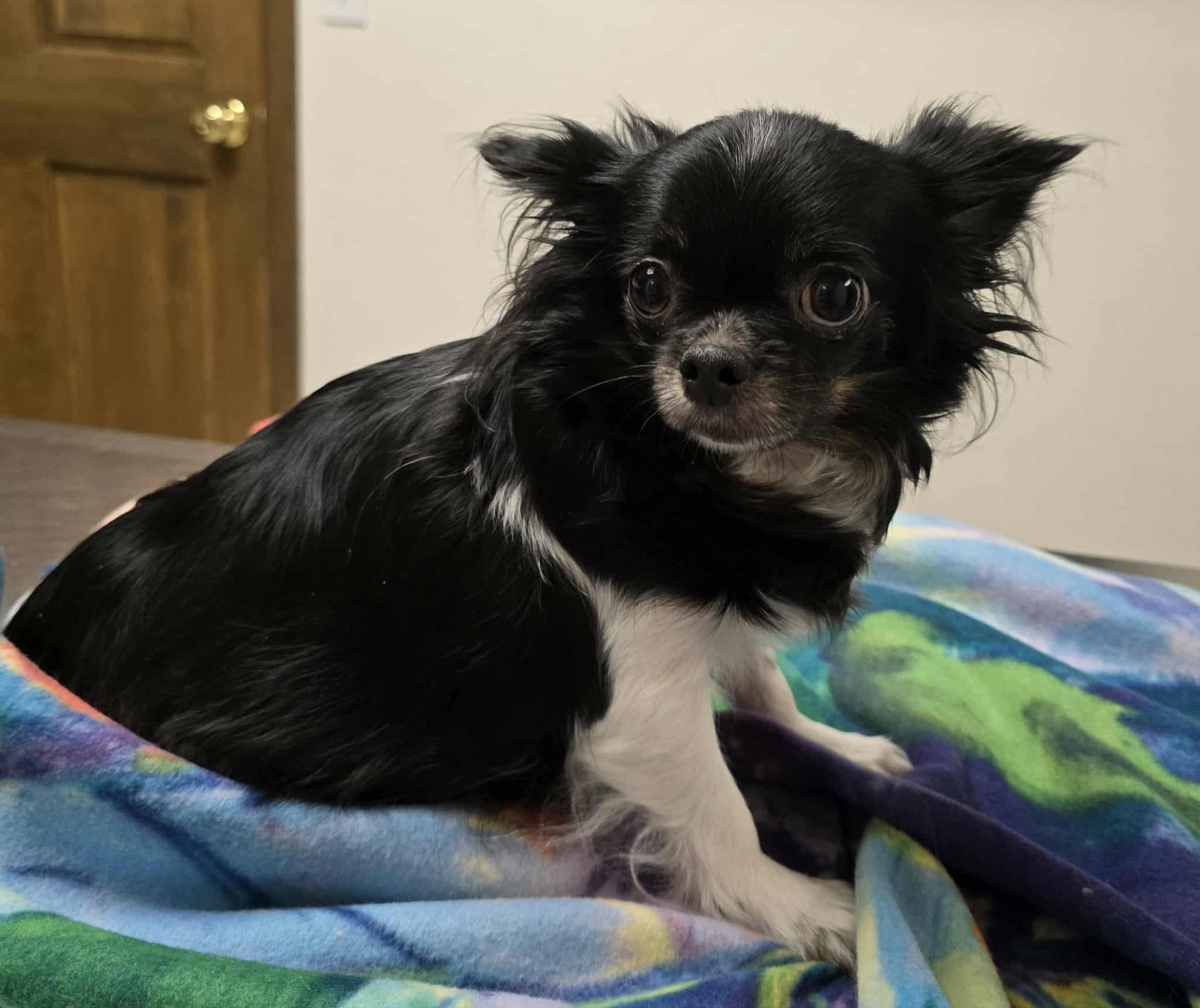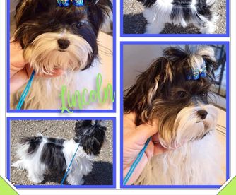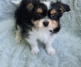 Aria is a Black and white long coat. She weighs 5 lbs. She carries for the gene to produce Smooth Face Mi Ki's. Aria is a very sweet and mellow girl. She loves everyone she meets. She is an excellent loving mother.