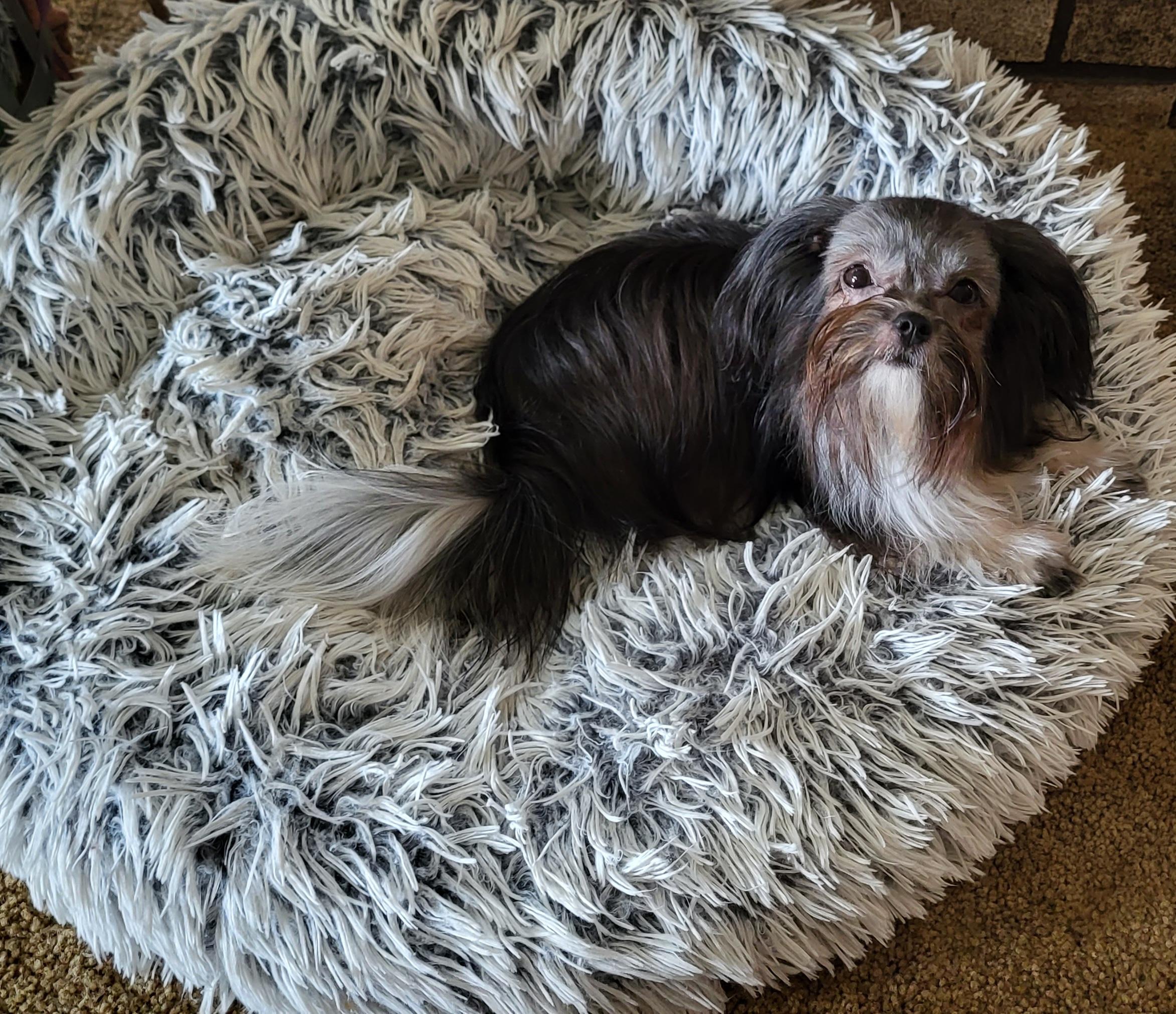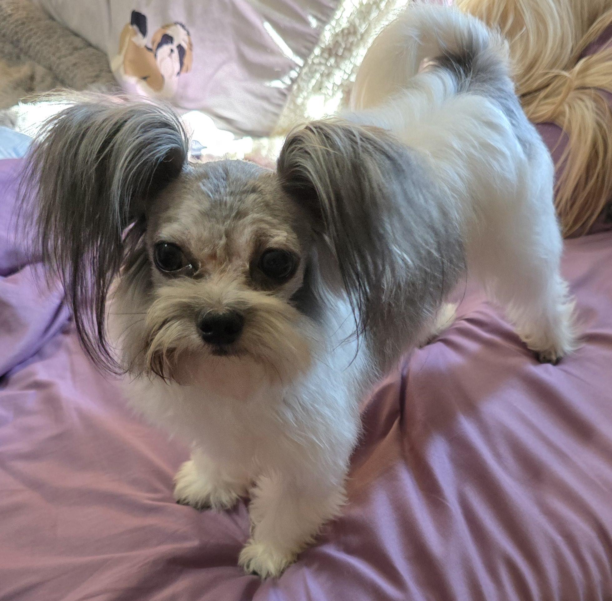 Rhianna is a very sweet and gentle soul. She loves everyone she meets. Rhianna has a beautiful sweet short nose, baby doll face. She has a lovely rich black silk coat and winged ( out) ears. She is a very beautiful representation of the Mi Ki breed. I just love this sweetheart.