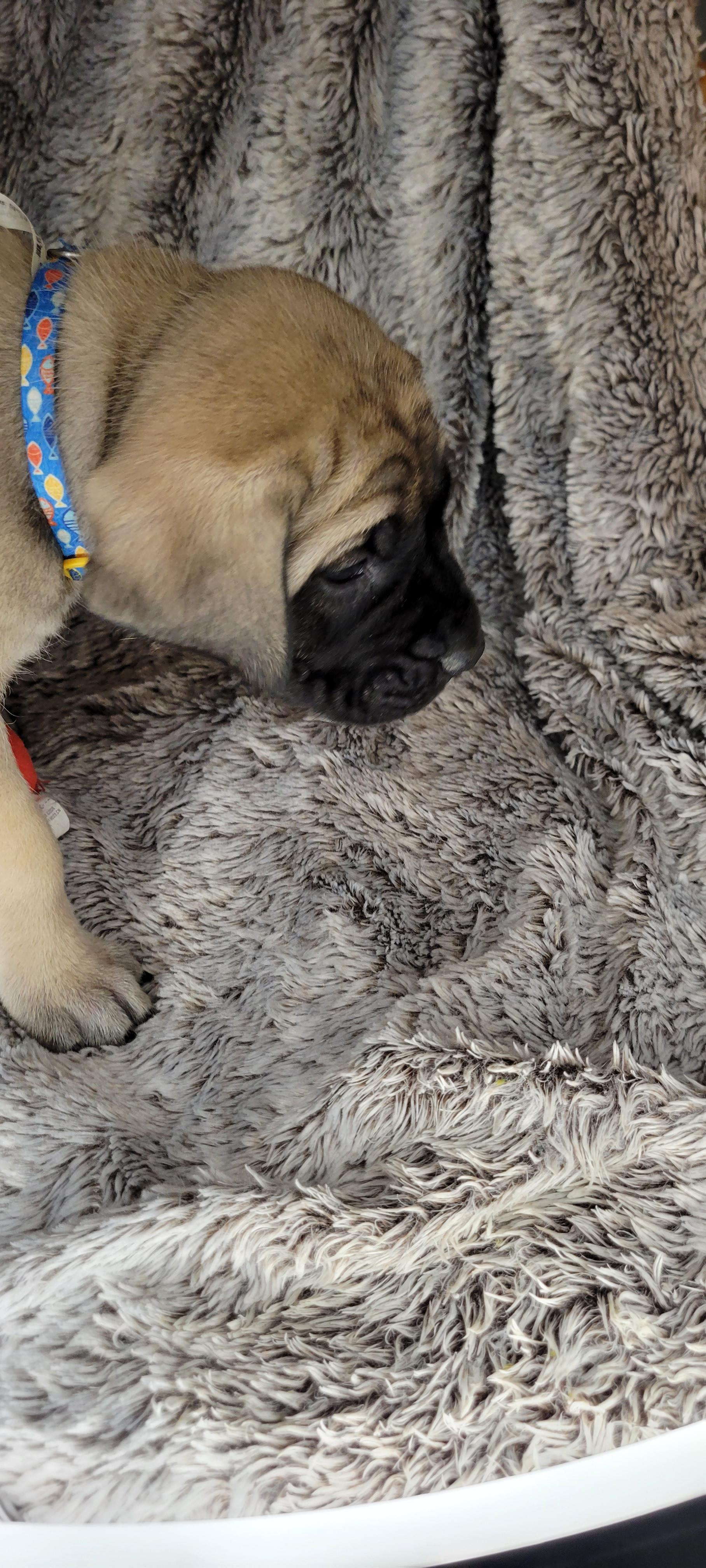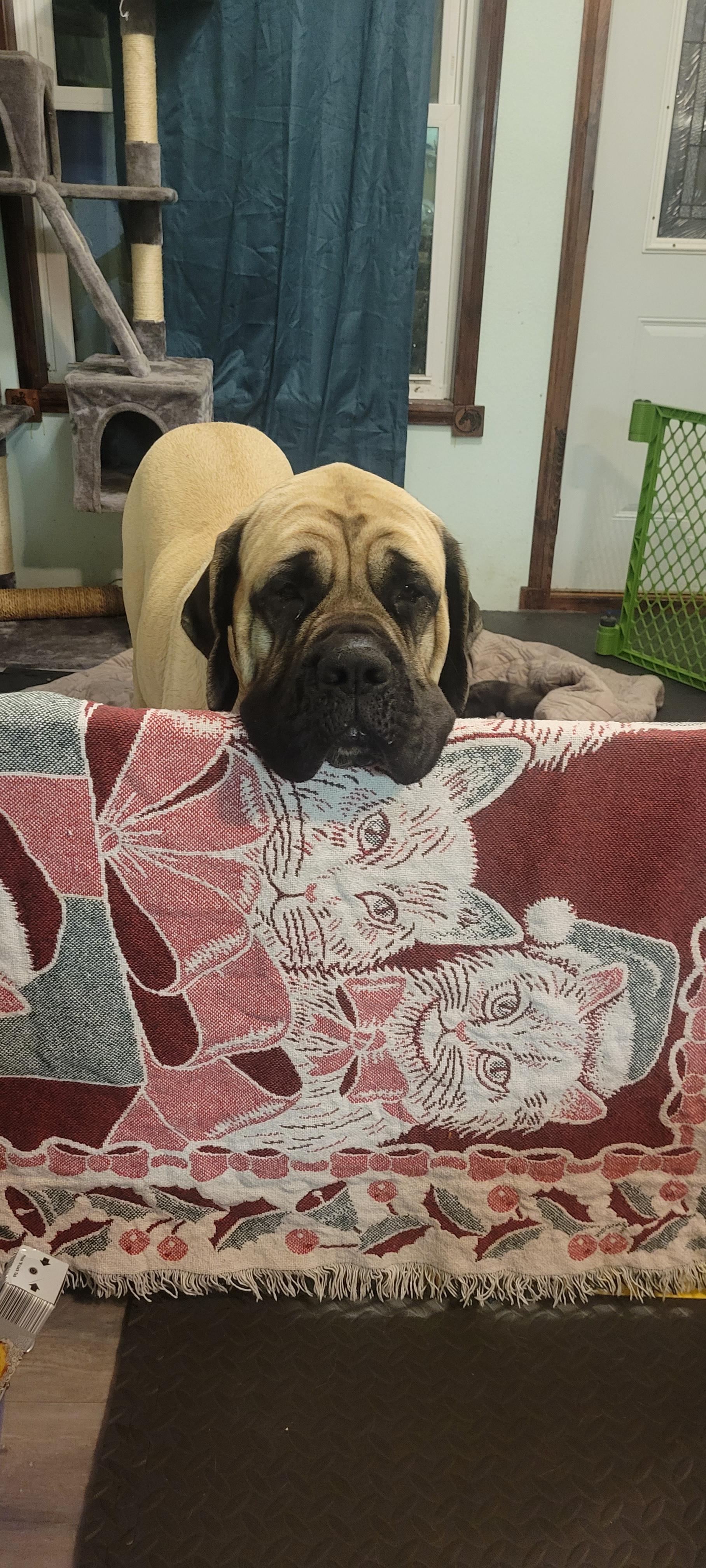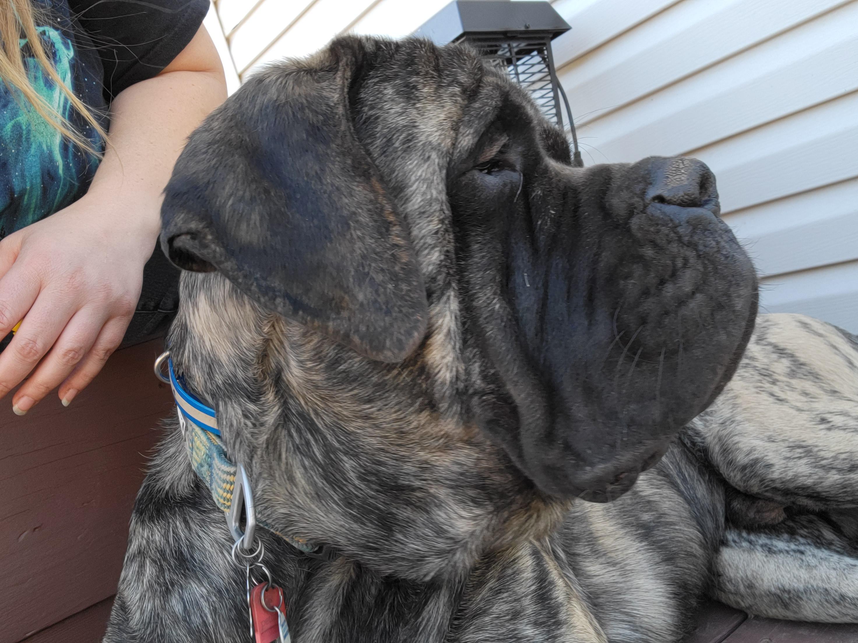 Dobby is a male Mastiff. Carefully selected as a great representative of his breed, Tina decided to make him part of their program. Tina has passed Good Dog’s screening process, which involved a review of their breeding practices, environment, and the mental and physical health of their dogs.