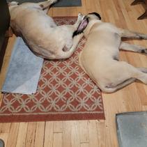 Hi, Tina. Nigel is just a hoot. At less than five months, relaxing with the 95 pound lab, Jasper. You picked me a good one. Thanks for the time we spent in conversation, I know our talks helped you select the right guy for us. Steve M.