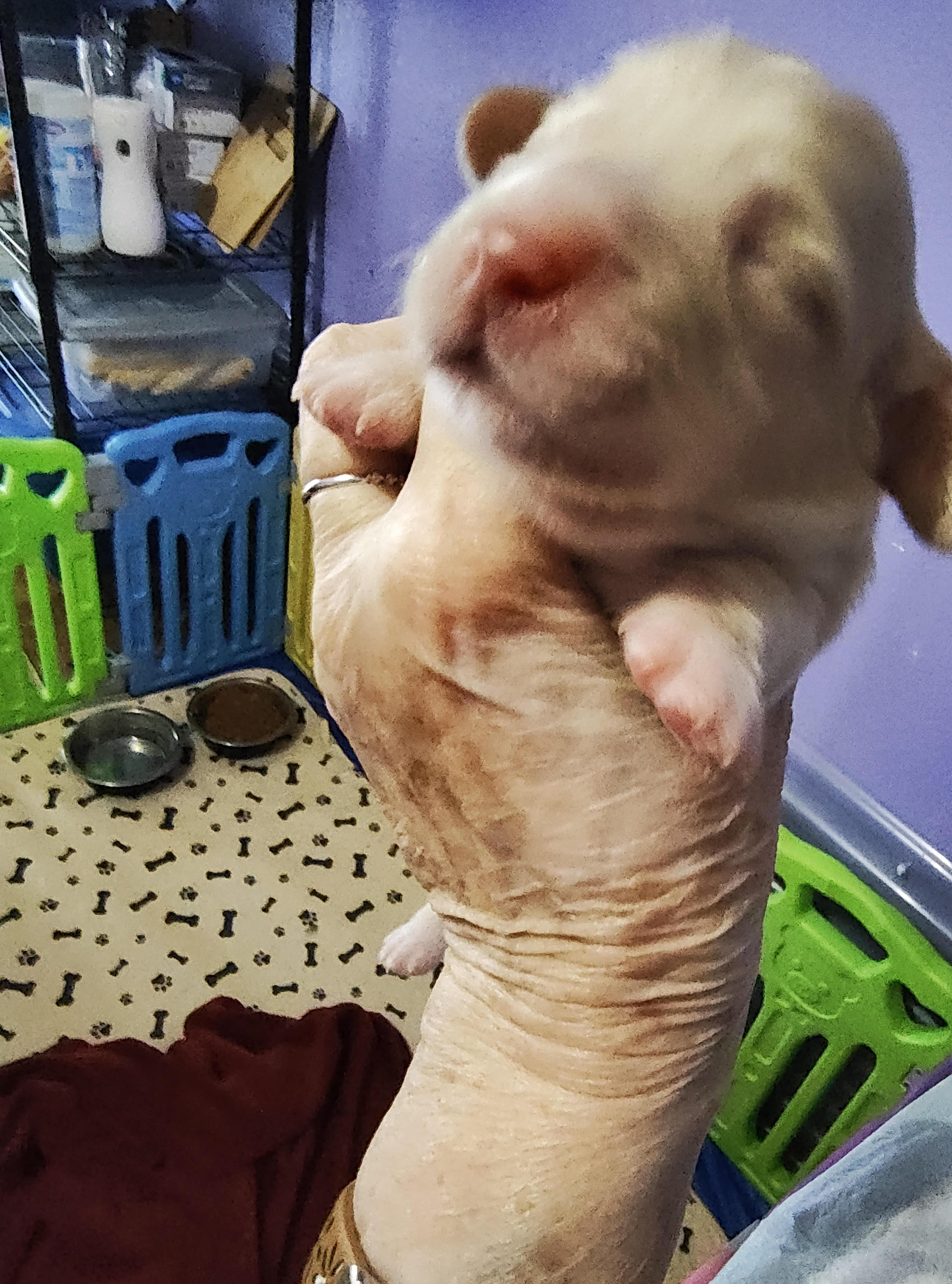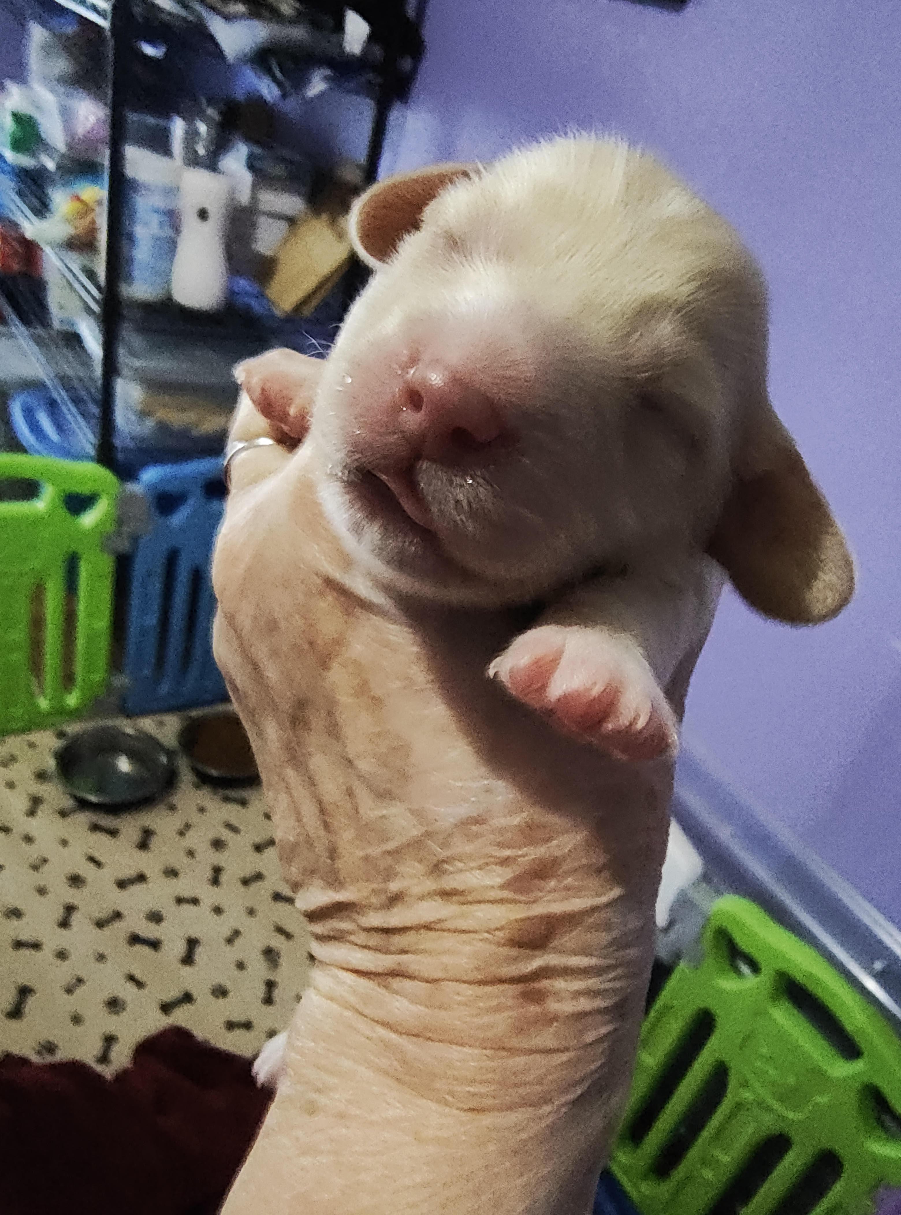 This is her first litter. She is a piebald cream carries the dapple gene. Khaleesi is the 4th generation from my lines. Easy temperament and a big snuggler.