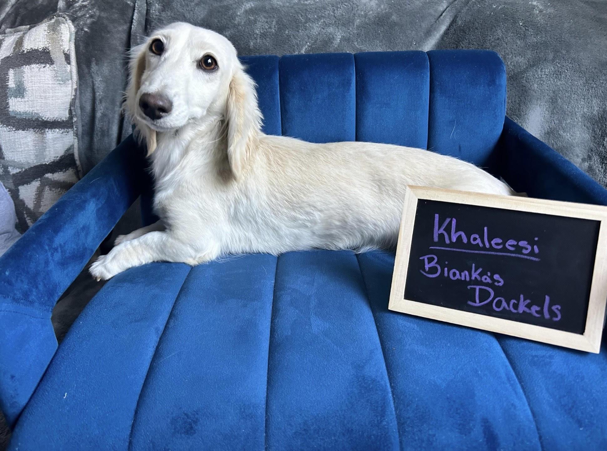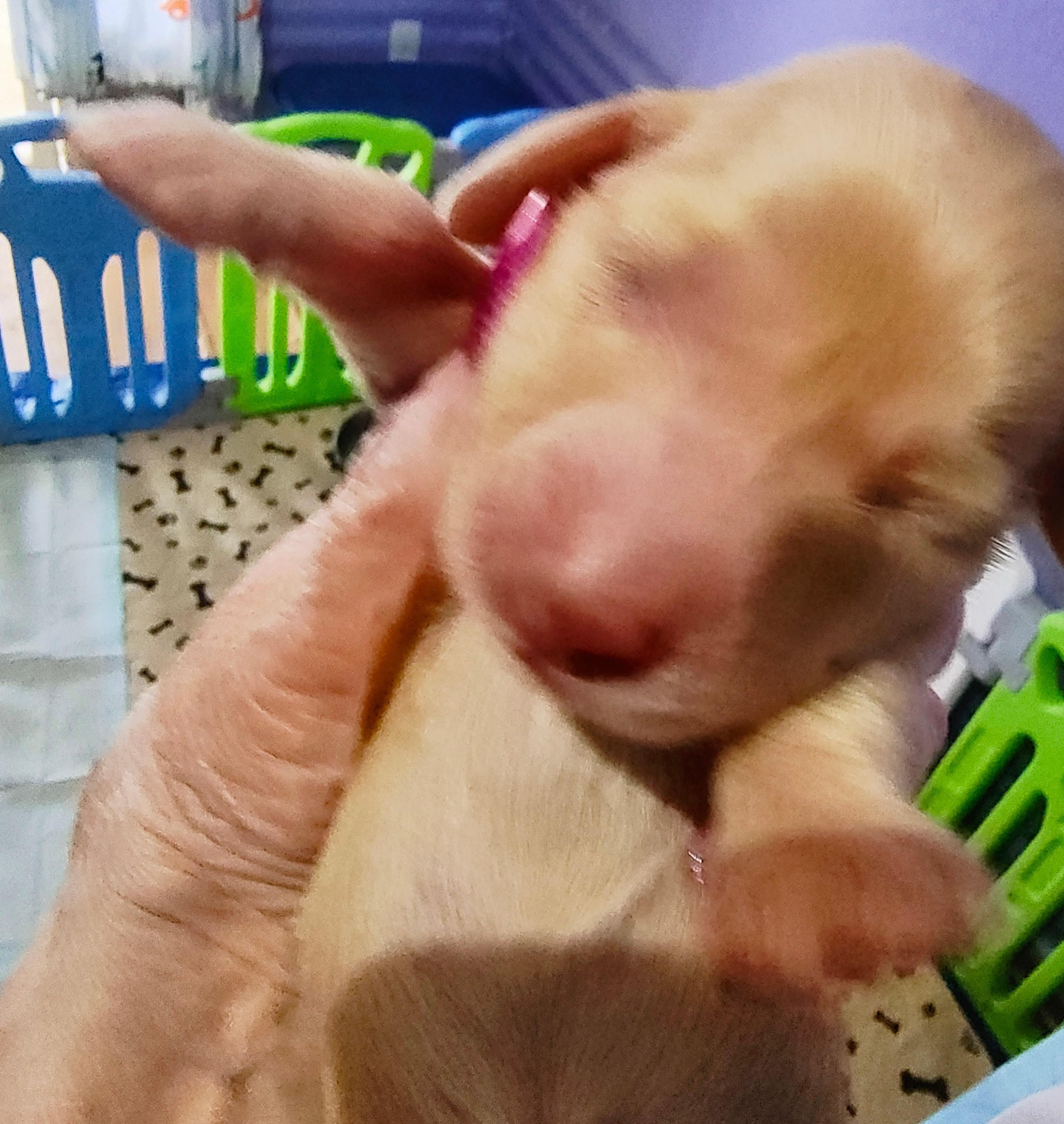 Fiona is a red cream longhair dachshund. This will be Sir Lancelot's last litter. Usually we expecting creams, shaded creams, red creams chocolate creams.