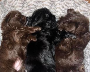 Our puppies include black, liver, liver and white, and black and white. Colors will vary depending on the parent dogs.