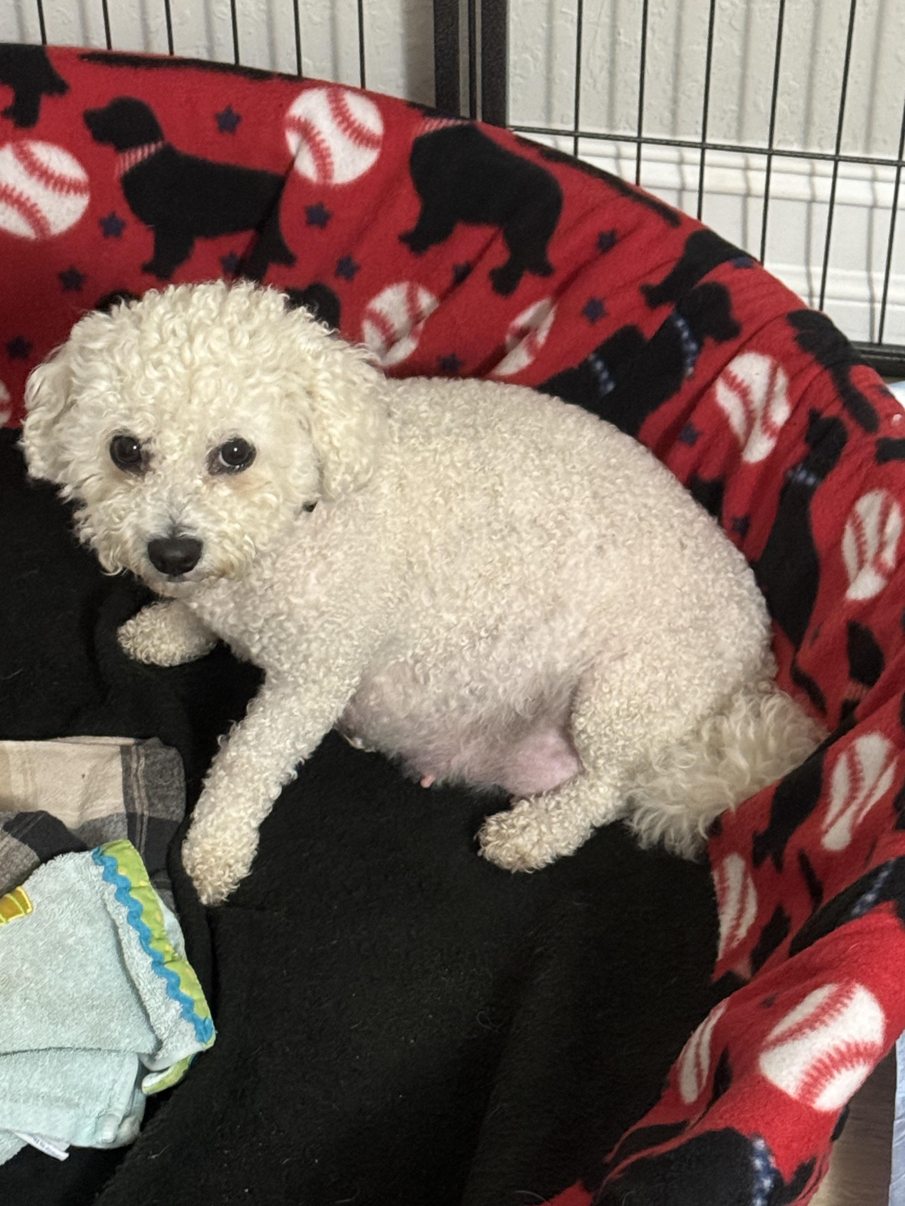 Trixie is a female Bichon Frise. Carefully selected as a great representative of her breed, Liz decided to make her part of their program. Liz has passed Good Dog’s screening process, which involved a review of their breeding practices, environment, and the mental and physical health of their dogs.