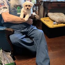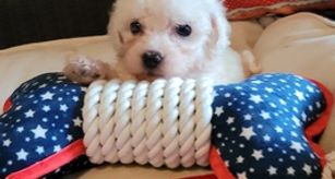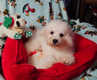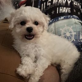 Jolly is gentle natured and loves belly rubs. He is a very loving Bichon and a joy to have around. He is AKC registered. He has had OFA testing on his heart and eyes. He has Champion bloodlines. I am glad he is my dog.