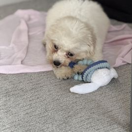 Linda was very responsive and knowledgeable. It was a smooth transition. We love our new dog. Linda provided papers proving our dog is a true niche on frise and the vet visit records.