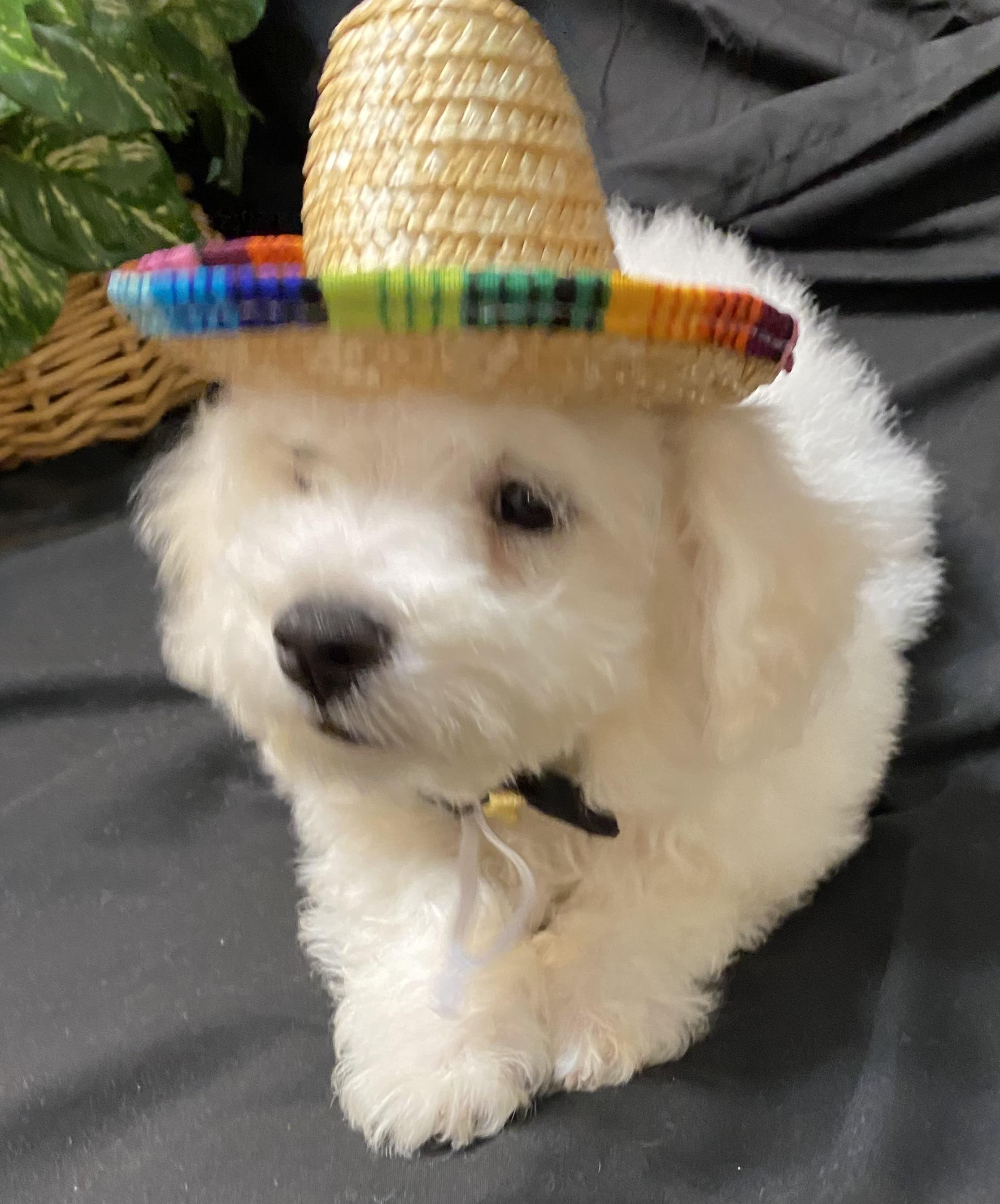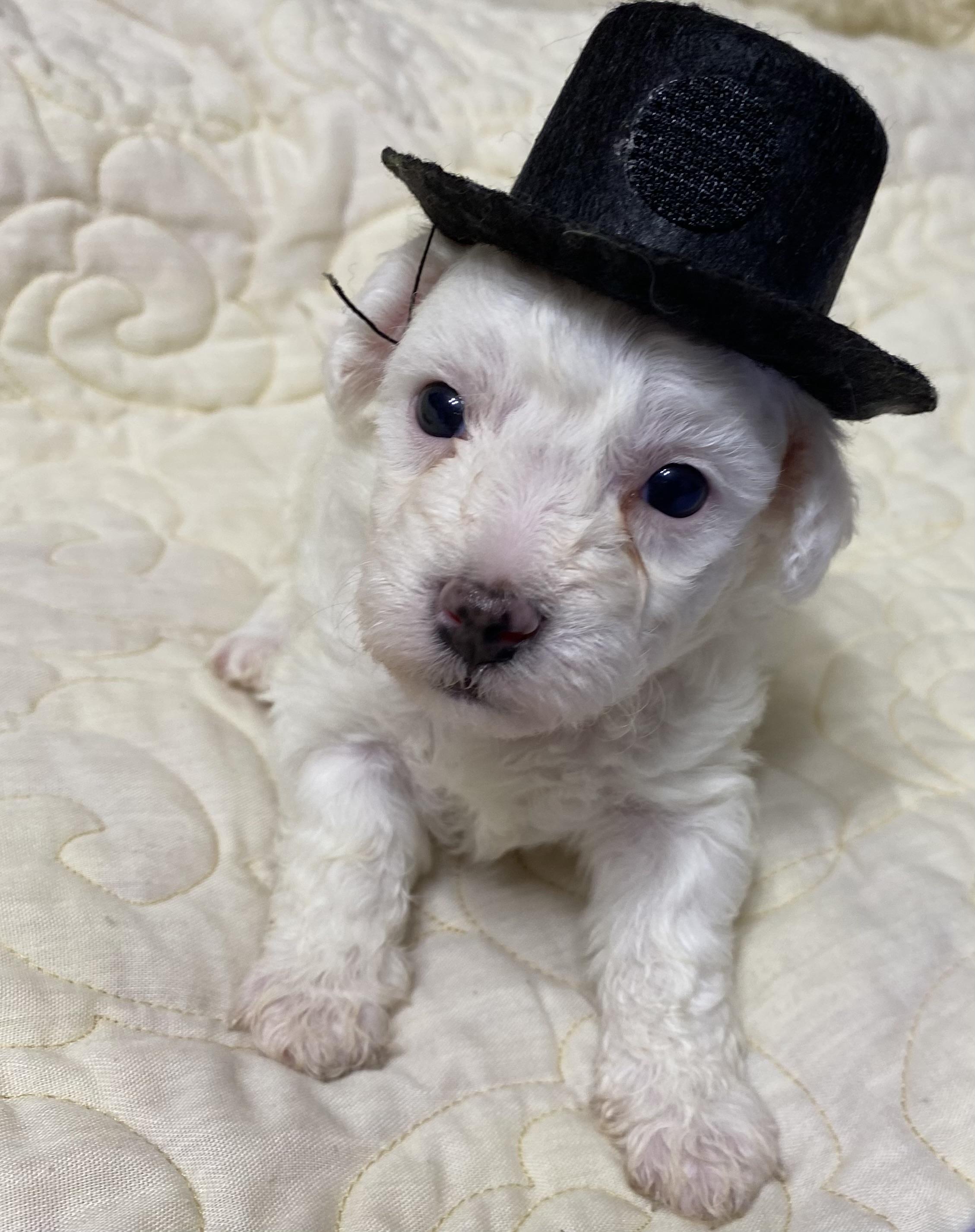Our puppies include white, white and apricot, and white and buff. Colors will vary depending on the parent dogs.