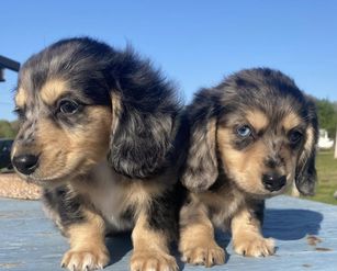 Our puppies include red, wild boar, chocolate, wild boar and cream, black and tan, and dapple. Colors will vary depending on the parent dogs.