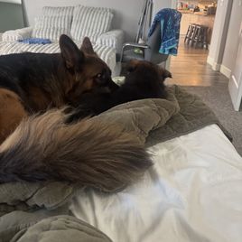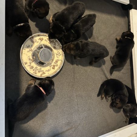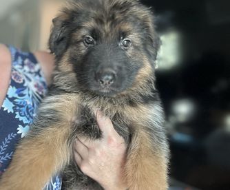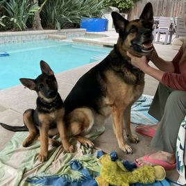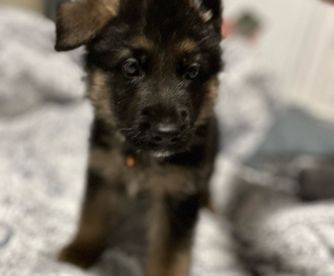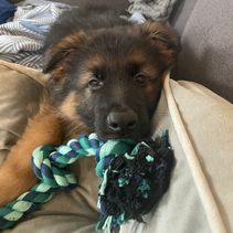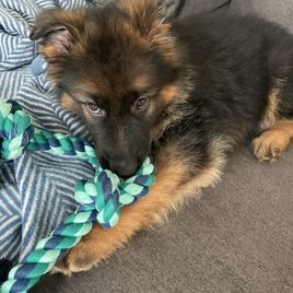 This one is the fourth pedigreed GSD puppy we’ve had over last 38 years (in addition to multiple mature rescues). If you are looking for your first GSD puppy, Laura is very knowledgeable breeder and lovely lady. Communications/responsiveness was outstanding. What I really like about Laura’s puppies is that they have spent their first 8 weeks being socialized in a family residence with both their Sire and Dam. It took this puppy less than a day to lose all her fear of our 9 year-old male.