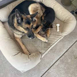 I am breeding West German Show Lines GSD to have big bones, stable temperaments and excellent health. I spare no expense to ensure the health of my dogs, and DNA test through Embark and get OFA certification for hips. I proudly stand behind my dogs with lifetime support for them and their owners.