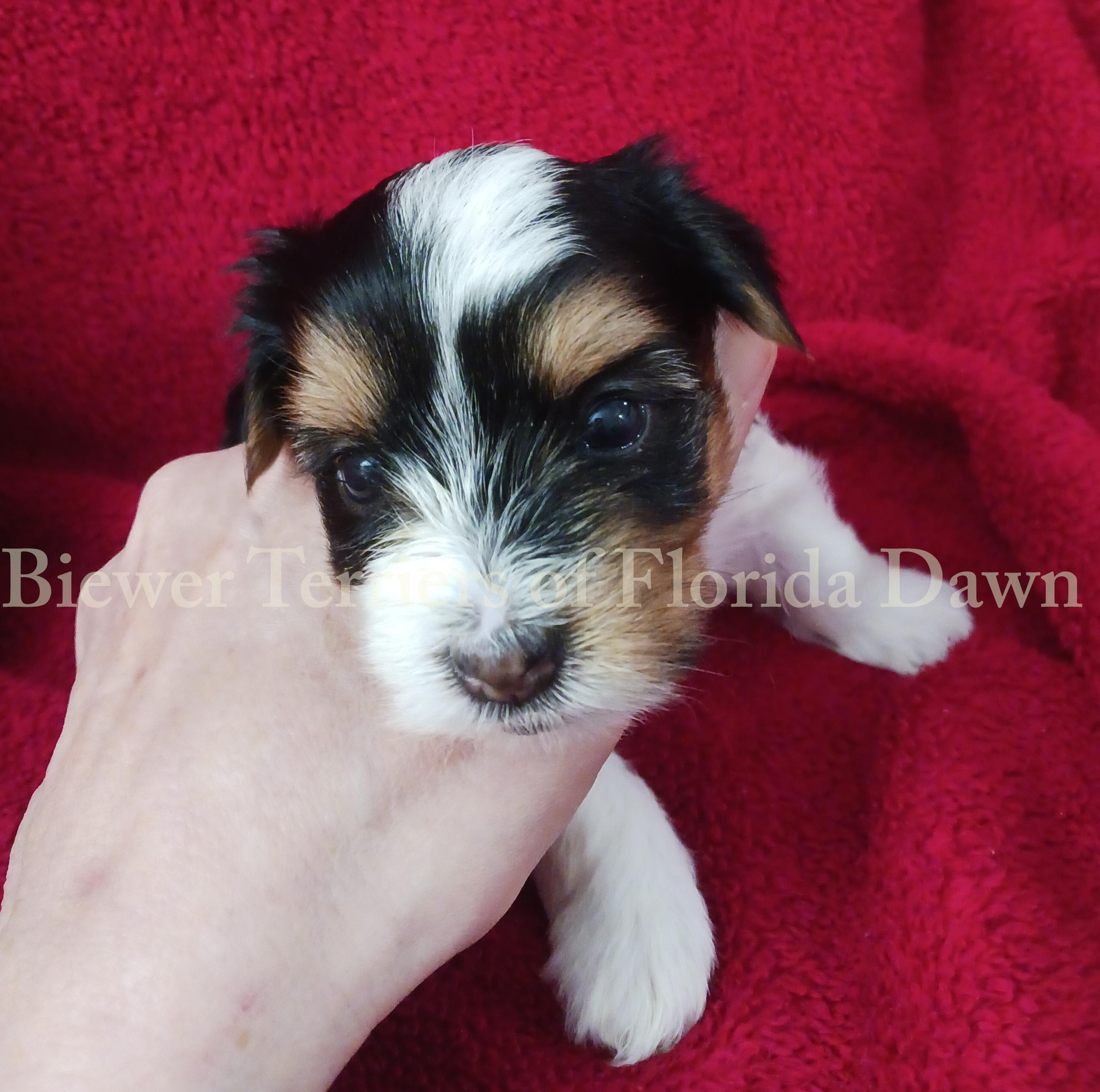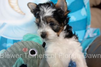 We purchased our beautiful happy and healthy Biewer terrier and we call him Willie. Wewent thru Good dog website. At first we were leary since there are a lot of breeders selling pups and we did not know who we could trust. Turns out Good dog directed us to Biewer Terriers of Florida Dawn..we soon realized Good dog only deals with the best most honest breeders.Dawn was just amazing.she sent us phots and terrific videos of all the different stages the pups were going through. She is very caring of her pups and calls the her "fur babies". She breeds the most beautiful Tri-colored pups that are healthy and well adjusted. If you would like to have a pup like Willie..call Dawn through Good dog. You can have every confidence in knowing you will get a happy,healthy and well adjusted puppy.