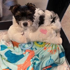 We have a 5 year old Biewer Terrier (Grace Kelly), who soo loves to play. We found a perfect match with Dawn in Sanford, FL!! We now have a beautiful boy named Prince Rainier that is so loving, fun, and healthy, thanks to Dawn. In dealing with Dawn it was so easy and everything was so transparent. She communicated with us almost everyday with pictures and text messages. She started the socialization and potty training before we got him. We were given his blanket with his parents and siblings scent on it, so thoughtful and smart. He is a total love bucket and sleeps well. She made sure we knew what Vet steps were next, what behaviors to expect, food and baby distilled water, treats, toys, everything she could think of to make his transition so easy and smooth!! Dawn was just amazing to work with and we highly recommend her. Steve and Lori