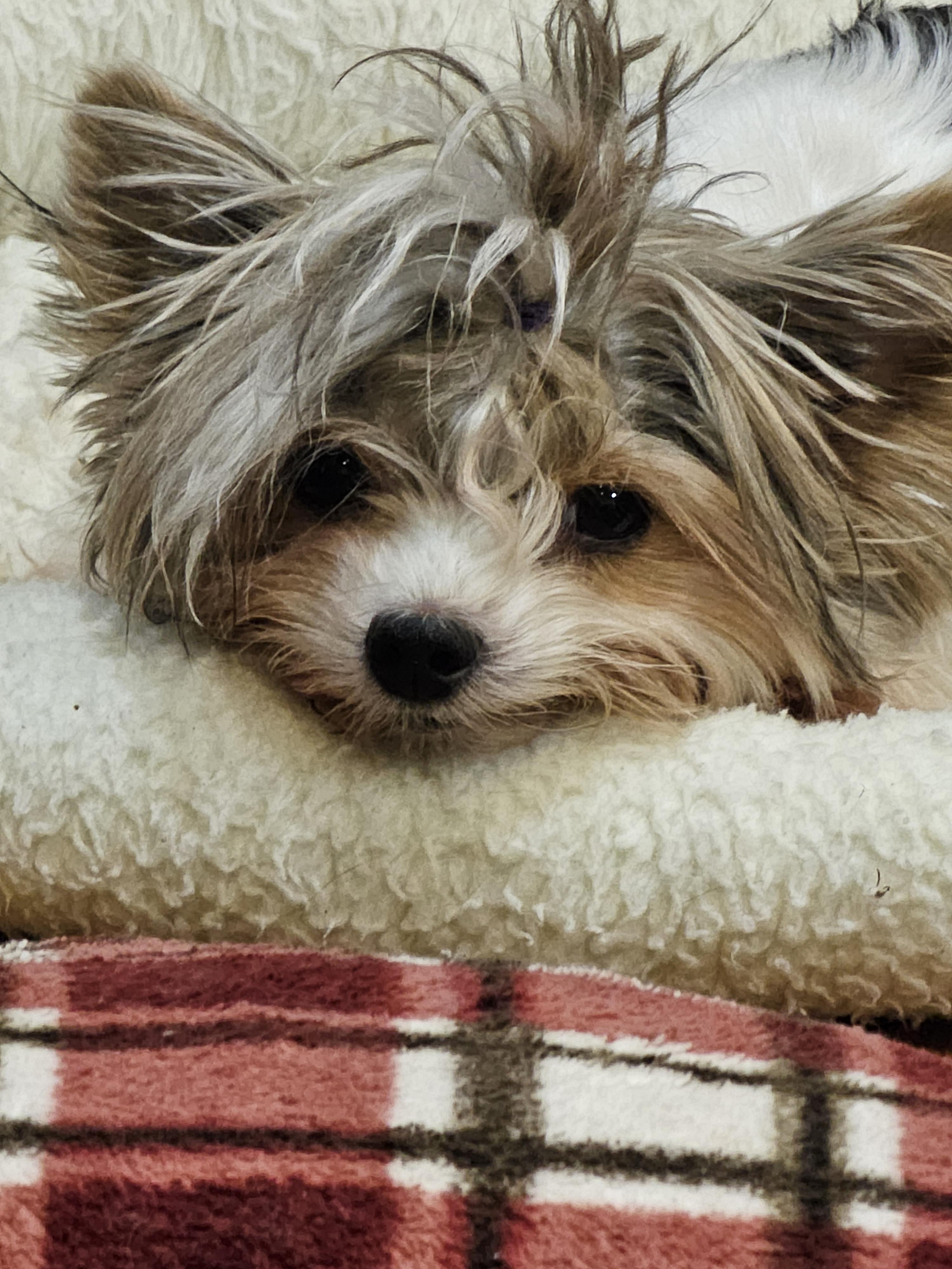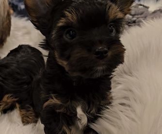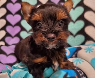 Aislin is a black Biewer. DNA and genetic tests proven. She is fiercely protective like the traditional yorkie but just as sweet. She will lay in my lap for as long as possible.