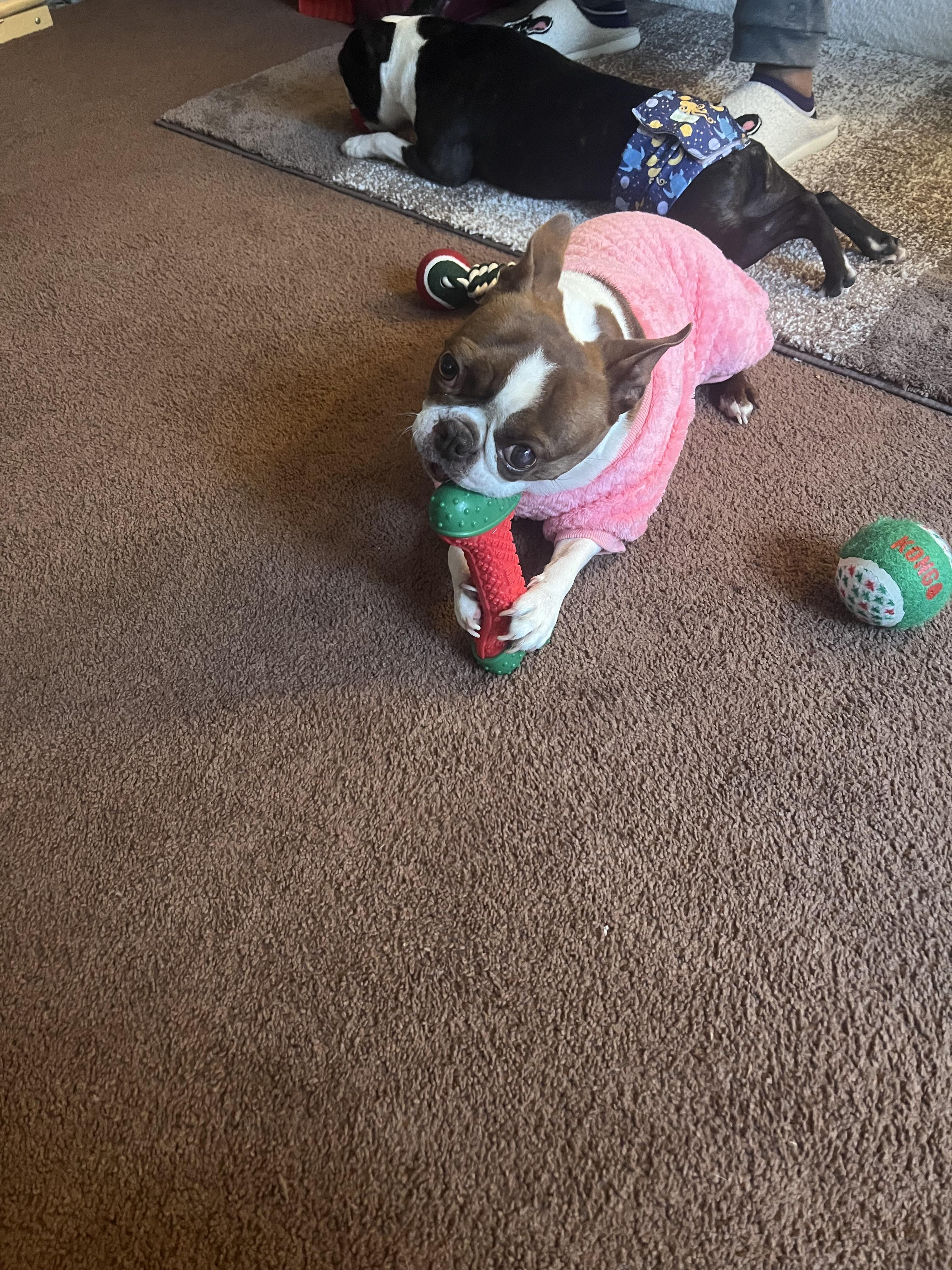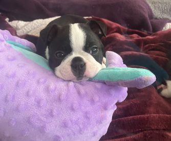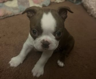 I'm Nadra S., the breeder behind Big Bang Bostons located in Gaithersburg, MD. Our boys were conceived naturally from our two loved dogs Amy and Sheldon. We are now looking to re home the boys (Howard and Leonard) they are both sweet loving playful pups who enjoy walks, cuddling and playing with their toys. They are both AKC certified and come with their papers.