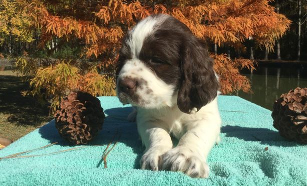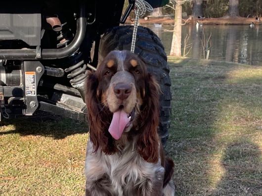 Timber is a male English Springer Spaniel. Carefully selected as a great representative of his breed, Johnny decided to make him part of their program. Johnny has passed Good Dog’s screening process, which involved a review of their breeding practices, environment, and the mental and physical health of their dogs.
