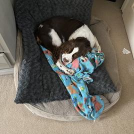 Stella is a female English Springer Spaniel. Carefully selected as a great representative of her breed, Johnny decided to make her part of their program. Johnny has passed Good Dog’s screening process, which involved a review of their breeding practices, environment, and the mental and physical health of their dogs.