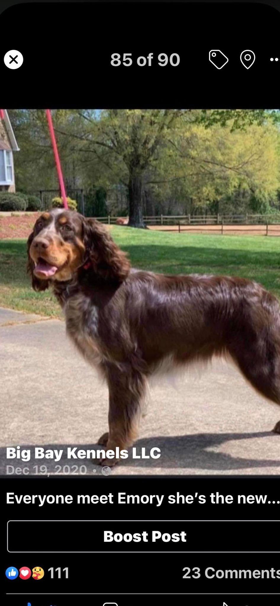 Emory is a female English Springer Spaniel. Carefully selected as a great representative of her breed, Johnny decided to make her part of their program. Johnny has passed Good Dog’s screening process, which involved a review of their breeding practices, environment, and the mental and physical health of their dogs.