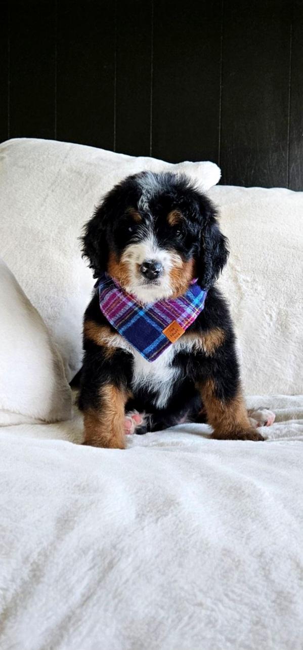 Lulu is a female Bernedoodle about 4 years old. Carefully selected as a great representative of her breed, Sydni decided to make her part of their program. Sydni has passed Good Dog’s screening process, which involved a review of their breeding practices, environment, and the mental and physical health of their dogs.