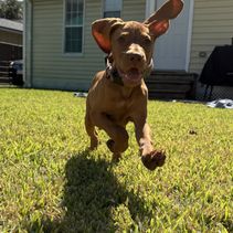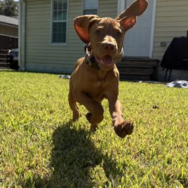 Frankie is a female Vizsla. Carefully selected as a great representative of her breed, Jon decided to make her part of their program. Jon has passed Good Dog’s screening process, which involved a review of their breeding practices, environment, and the mental and physical health of their dogs.
