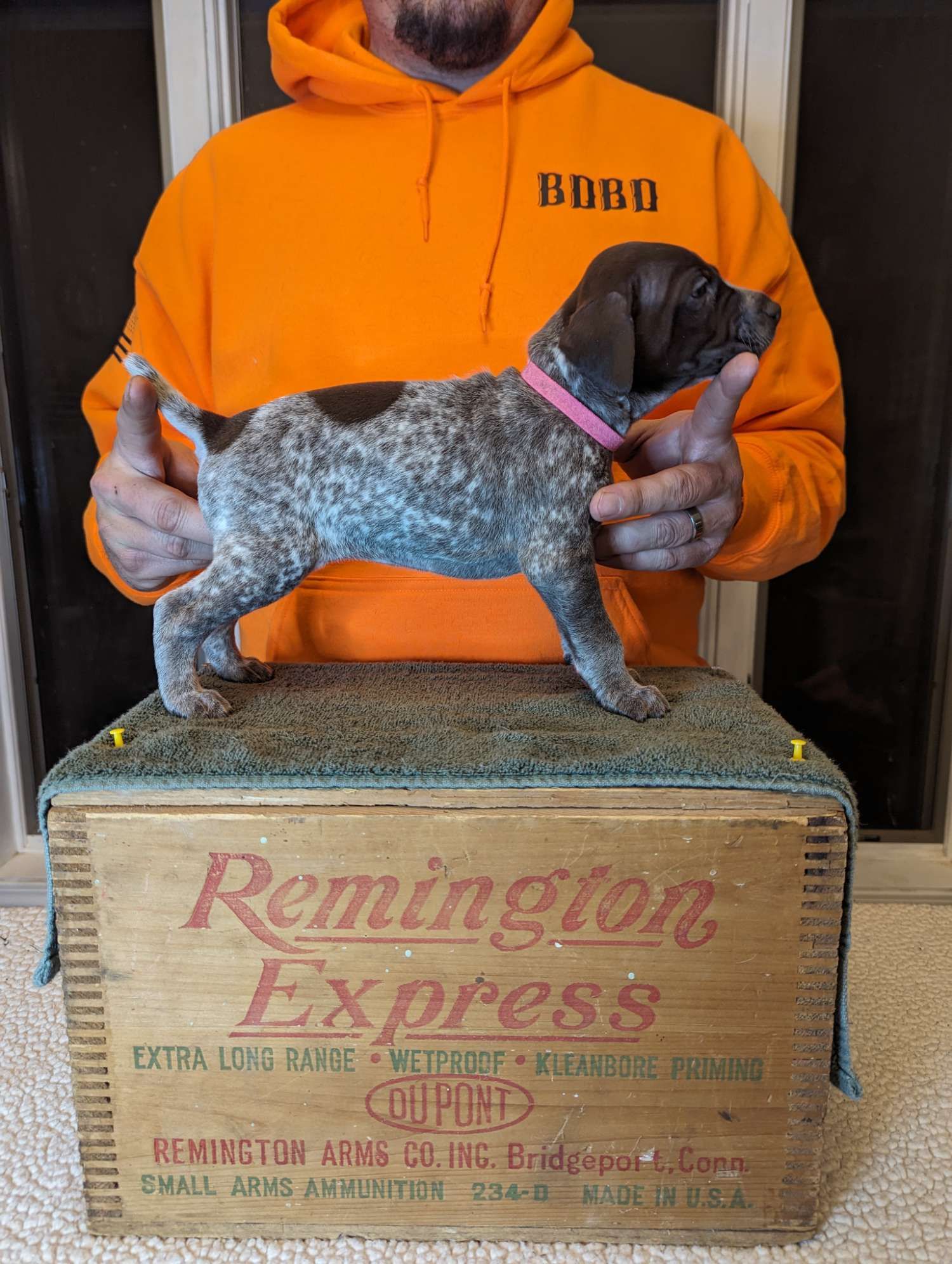 I'm David S., the breeder behind Big Daves Bird Dogs LLC, BDBD located in Highland, IL. We breed German Shorthaired Pointers with great traits. We want dogs who can do great pieces of work in the field and in the home. We carefully breed German Shorthaired Pointers doing all breed-specific testing to produce healthy puppies that will have the prey drive to take you to the level you are aiming for. All of our puppies will come with pre-paid AKC registration and with our kennel BDBD in the prefix of the registered name.